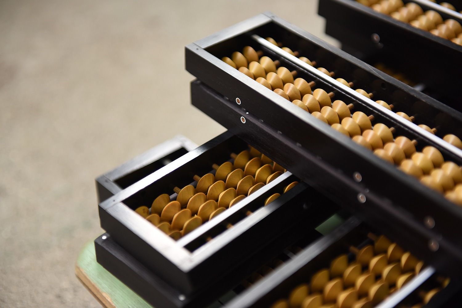 | そろばんは室町時代の終り頃、中国から長崎を経由して大津に伝わりました。安土桃山時代に、豊臣秀吉の三木城攻略時に、大津に逃れた住民が、そろばんの技法を習得し、地元に帰って製造を始めたのが播州そろばんの始まりと言われています。昭和35年には360万丁と最も多く生産されましたが、その後電卓の出現によって、その需要は減少しています。 |